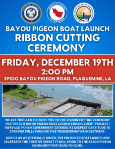 We are thrilled to invite you to the Ribbon Cutting Ceremony for the $2M Bayou Pigeon Boat Launch Enhancement Project! Iberville Parish Government extends its deepest gratitude to CPRA for fully funding this transformative investment.